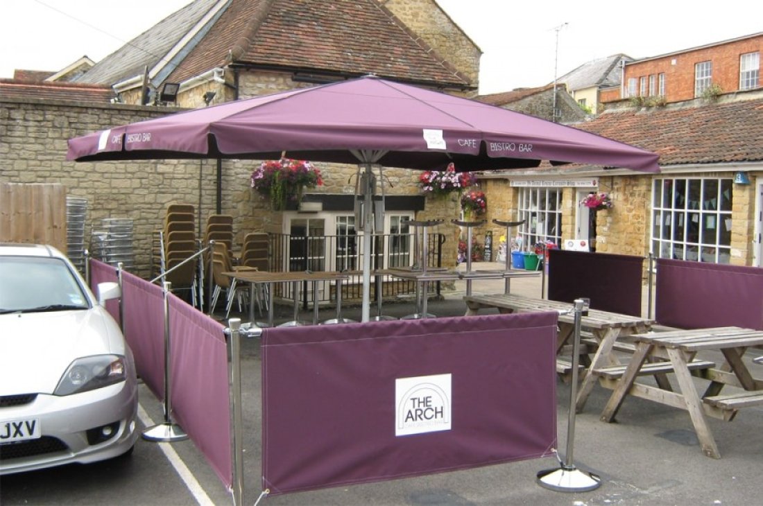 Our branded pub parasols in Swindon are attractive, functional, easy to operate, and will allow you to make more of your outdoor seating area all year round. To enquire, call Broadview today on 01202 679012 and we’ll be happy to discuss your requirements with you.