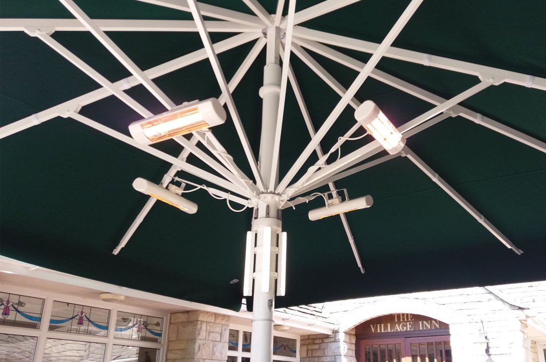 Increase customer satisfaction at your pub by including electric patio heaters when you purchase one of our outdoor structures, parasols or awnings. Contact us today to find out more on 01202 679 012.