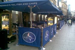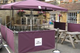 Our golf club promotional barriers are the perfect way to give visitors enjoying your outdoor seating area some protection from the wind and look even better once combined with our golf club umbrellas. Our golf club promotional barriers can be joined together from 0 to 90 degrees, giving you total freedom for shape and placement. Broadview also offers you total flexibility when it comes to colour and design, so whatever visual impact you want your golf club promotional barriers to make, we can meet all your requirements with our in-house signwriting and design service.