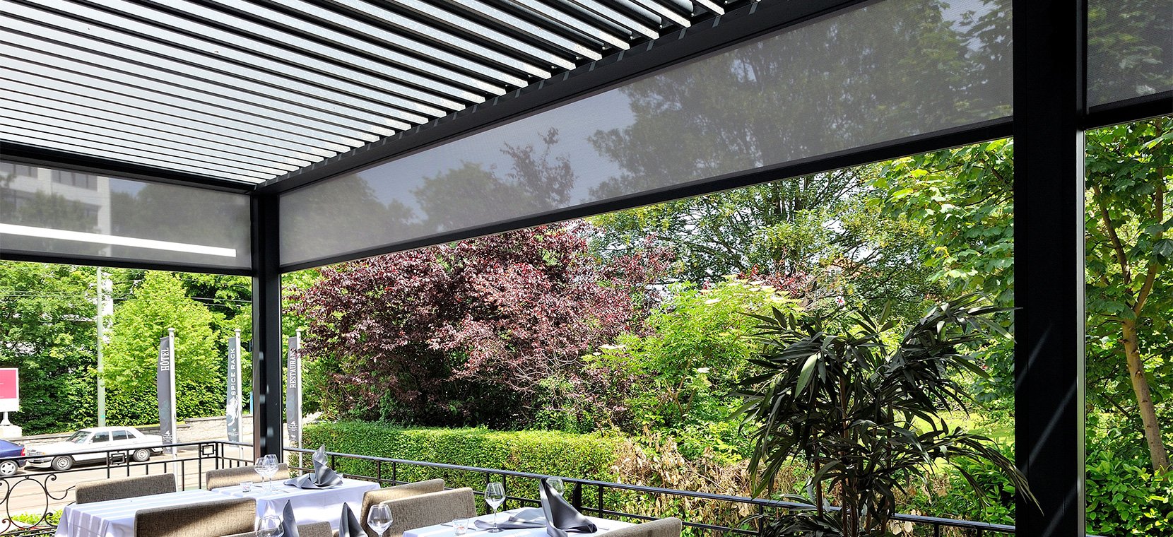 Our extensive range of outdoor structures with rotating and/or retracting roofs are the ideal solution for hotels as the space can used whatever the weather decides to do on the day. They are also perfect for those looking to increase their dining covers without losing precious al fresco dining space in the summer months. The fact remains that al fresco dining is the most popular demand across the UK during the spring and summer. Why lose your space to a conservatory or an extension, when you can enjoy of the flexibility our stunning outdoor structures offer?